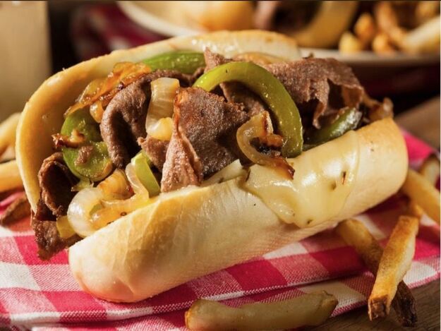 Served with grilled mushrooms, onions, and green bell peppers, topped with cheese and parsley on a toasted bun.