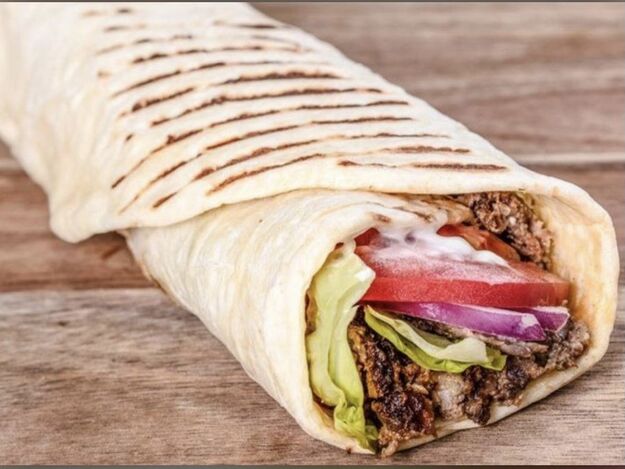ChatGPT said: Served with four lamb skewers, rice, salad, cucumber or hummus sauce, optional hot sauce, and warm pita bread.